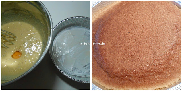 Enmantecar un molde de 23 centímetros de diámetro y hornear a 175º por 30 minutos, luego tapar el molde y hornear 10 minutos más.