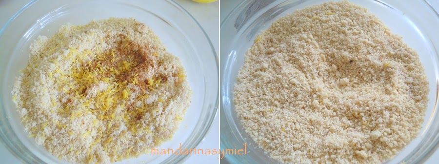 Añade a la almendra la canela y la ralladura de limón, reserva.