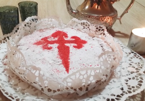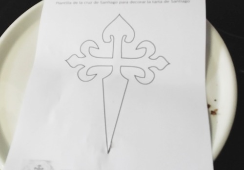 La cruz que ahora lleva, la Cruz de Santiago, fue idea de la Pastelería de Santiago de Compostela, Casa Mora, en 1924 (hace casi casi un siglo). Desde entonces, se ha cogido como emblema de esta tarta.