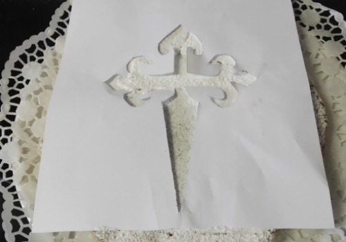 Para la decoración, utilizamos una plantilla de la Cruz de Santiago.