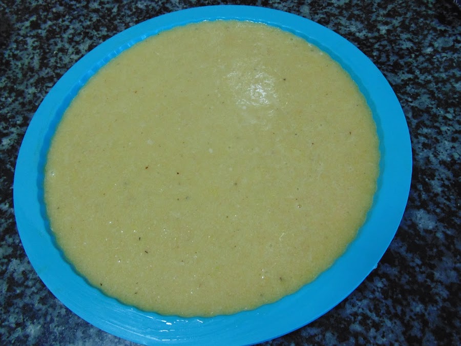 Una vez que tengamos la masa homogénea engrasamos el molde y añadimos.