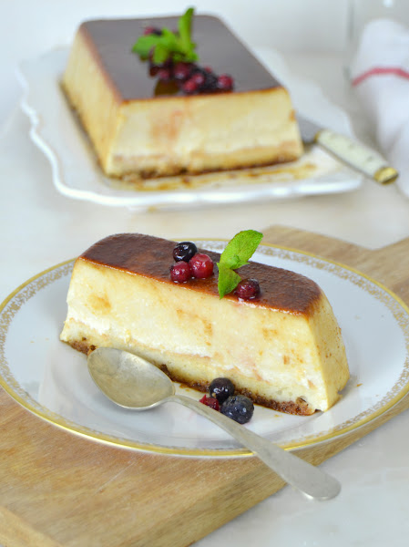 Pues, por si todo esto no fuera poco, además le hemos preparado sin cuajada. La habíamos visto en varios blogs usando cuajada para prepararla pero nosotros hemos preferido usar gelatina ya que es mucho más sencilla de hacer ¡Y el resultado es espectacular! Una tarta a mitad de camino entre el flan de toda la vida y la tarta de queso con el toque super rico de los sobaos de la base ¡Tenéis que probarla!