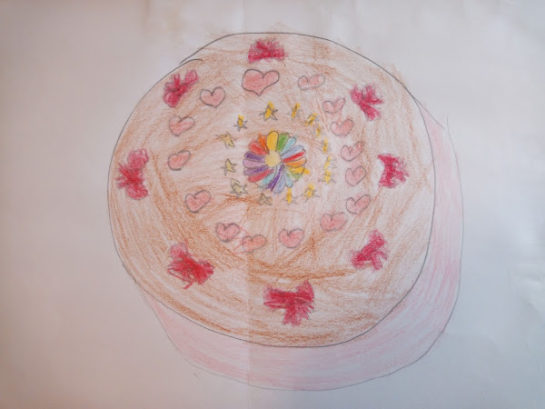 Y a los pocos dias me dio el dibujo de una tarta muy colorida y adornada como podeis ver.