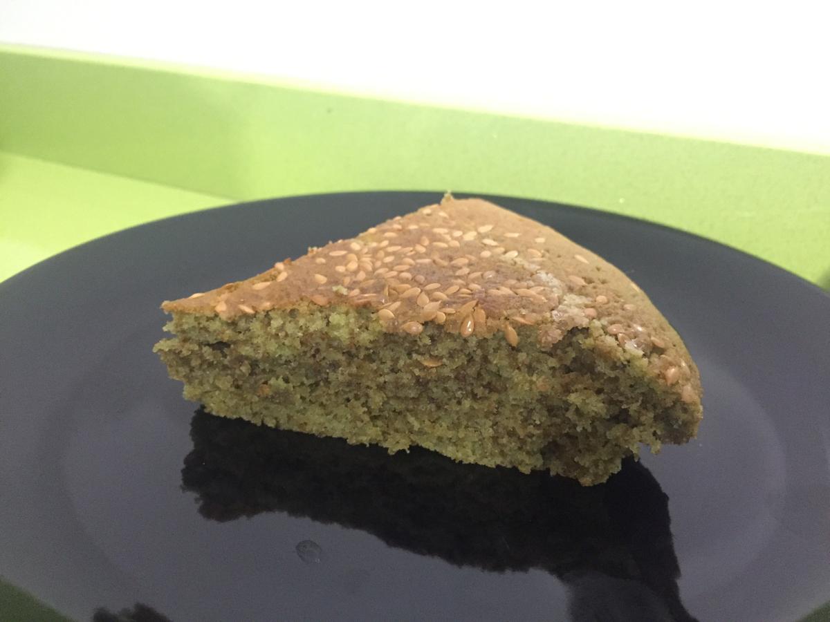 Tarta de Te matcha y semillas de lino dorado