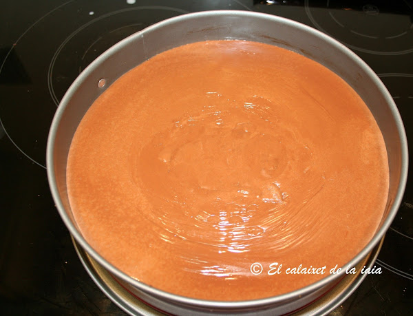 También se puede hacer con la Iber...que es similar a la Thermomix. Con la Iber pongo todos los ingredientes 7 minutos a 90º y velocidad 5. Vuelcas sobre la galleta y lo dejas enfriar para hacer la siguiente capa.