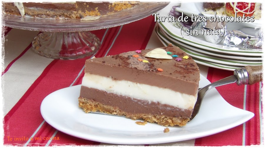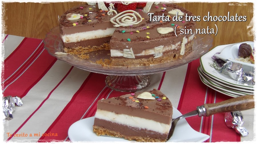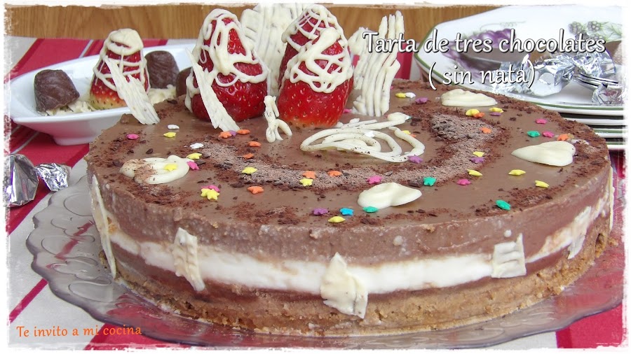 Pensando en esas personas, de las cuales una es muy cercana a mi, y sabiendo que venía a comer el domingo, decidí hacer la tarta de tres chocolates, pero de forma que también pudiera disfrutar del postre.