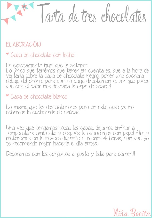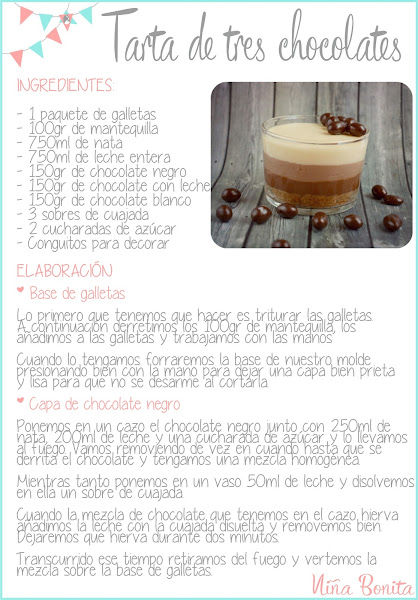 Hoy te traigo una receta espectacular, se trata de la tarta de tres chocolates. Ya es archiconocida pero es que es verdad que es casi perfecta. Así que al final me he decidido a compartirla contigo, aun que ya este muy vista.