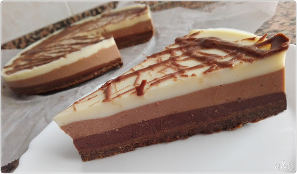 La he hecho miles de veces, pero nunca la he publicado, así que ya era hora. Os presento una tarta muy habitual entre quienes me conocen, porque siempre que puedo la hago. Además, es de las que más gusta en general y con la que siempre aciertas. Ha llegado al blog de Azúcar y Orégano la clásica Tarta de tres chocolates.