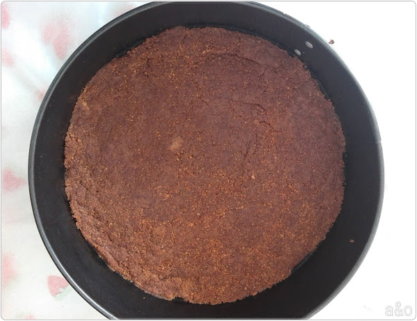 Primero. Trituramos las galletas y mezclamos con la mantequilla derretida hasta obtener una base compacta en nuestro molde de tarta, que previamente lo habremos forrado con papel de horno. Si queréis, podéis meter la base al horno unos 10 minutos para que se apelmace un poco más.
