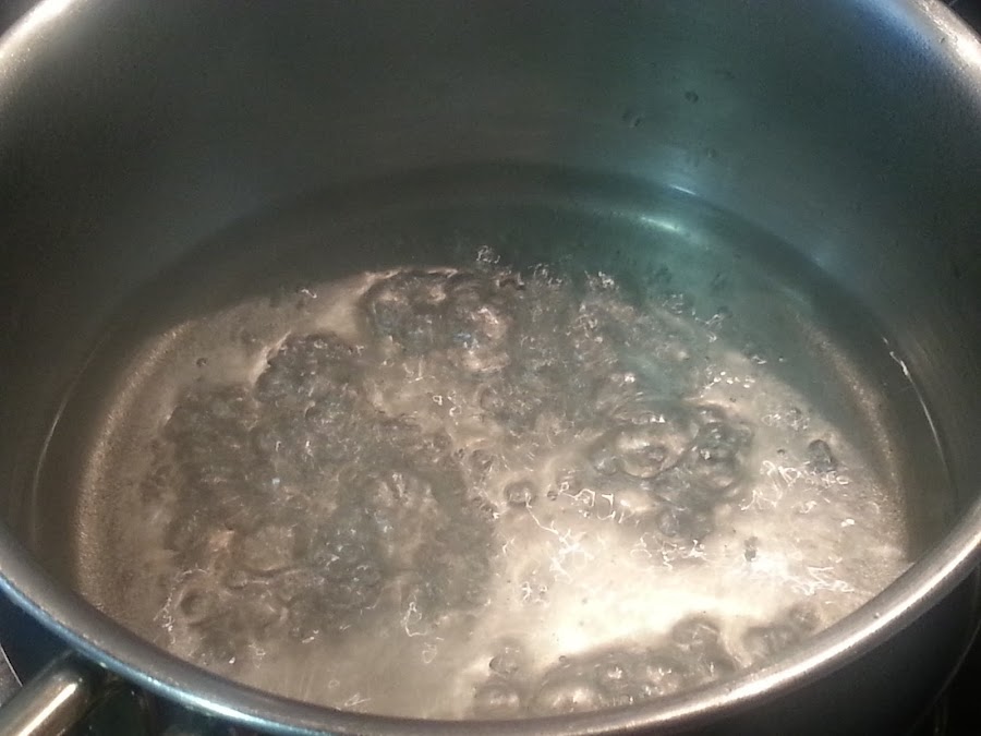 7. - Mientras se hornea, hacemos el almíbar, poniendo en un cazo el agua con el azúcar y dejándolo hervir 5 minutos, y reservamos.
