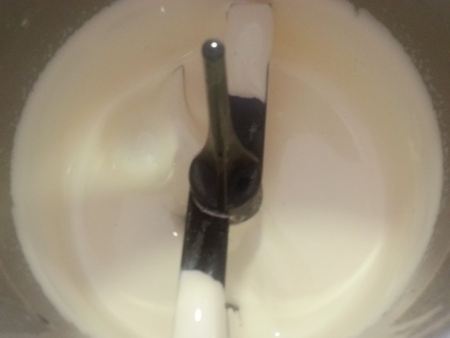 Debe quedar como una mousse. Yo en la termo lo puse 6 minutos a temperatura 40 batiendo con la mariposa.