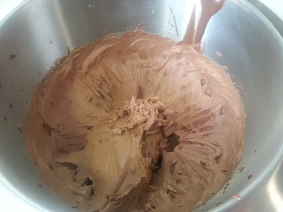 8. - Sacamos de la nevera la crema de trufa ya fría y la batimos hasta montarla, como si fuera nata (crema de leche)