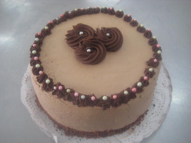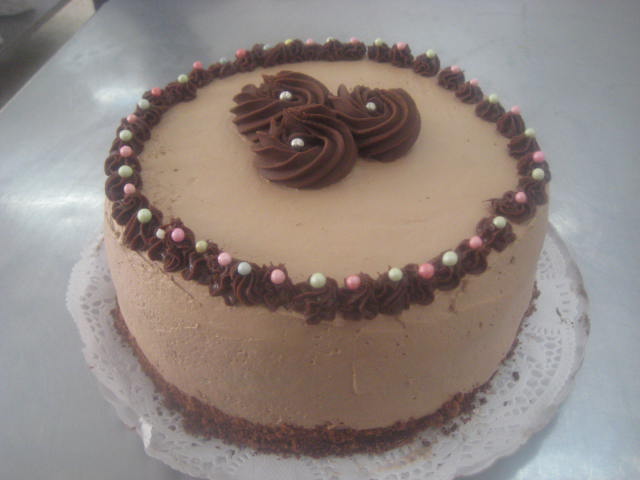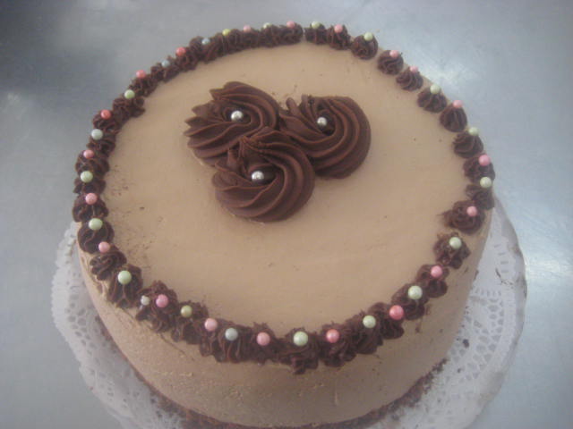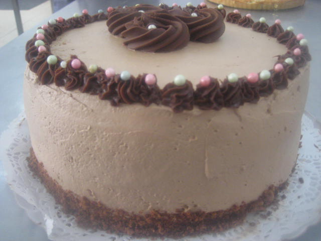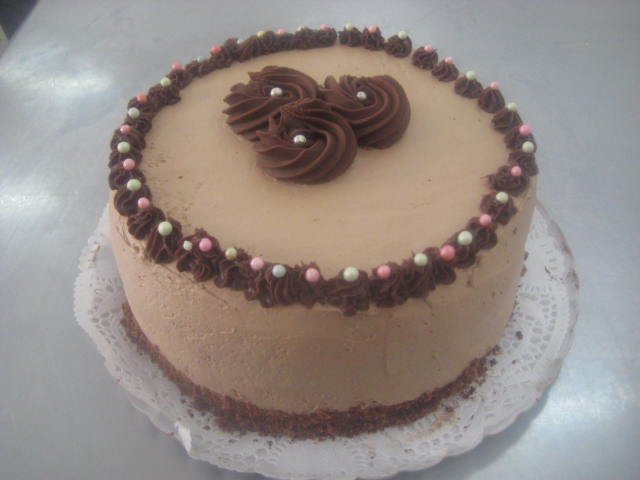 Montaje de la tarta: Colocar una capa de bizcocho y empapar ligeramente con el ponche, luego una capa de trufa. Seguidamente otra de bizcocho de la misma forma y otra de trufa y así sucesivamente dependiendo si hemos hecho 3 ó 4 discos de bizcocho. Terminar lógicamente con bizcocho y cubrir con una finita capa de trufa. Dejar en la nevera unas horas y a la hora de presentar, decorar con algo más de trufa puesta en manga pastelera y los detalles que deseemos.