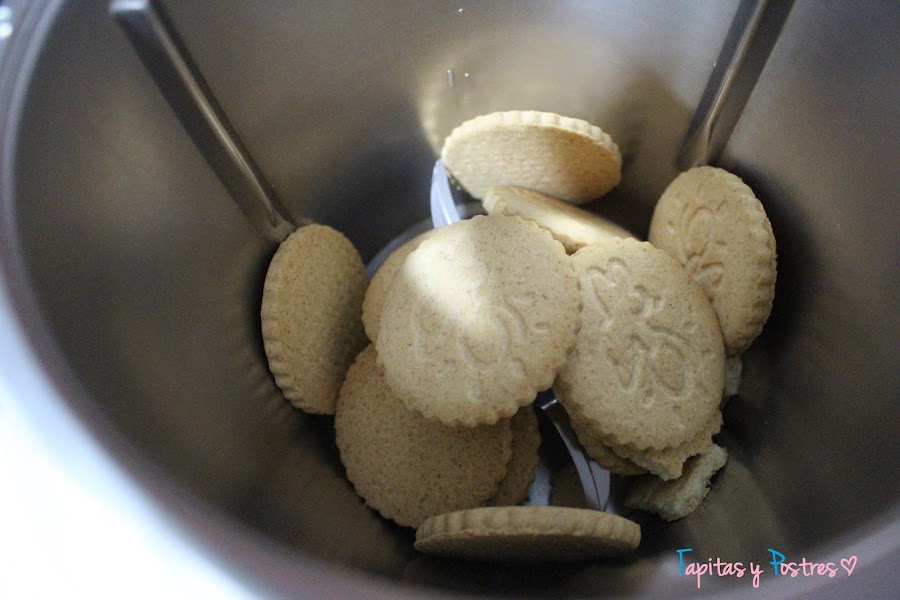 Primero vamos a pulverizar las galletas hasta hacerlas polvo, Yo lo he hecho con thermomix, 20 segundos a velocidad progresiva 8-10.
