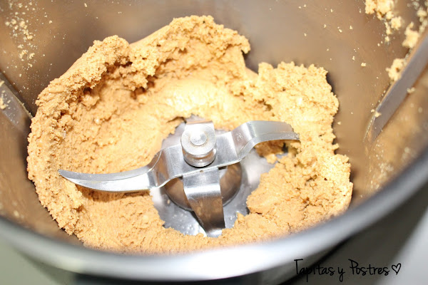 Trituramos las galletas con la mantequilla. Podemos triturar primero las galletas y añadir la mantequilla o hacerlo todo a la vez como he hecho yo esta vez.