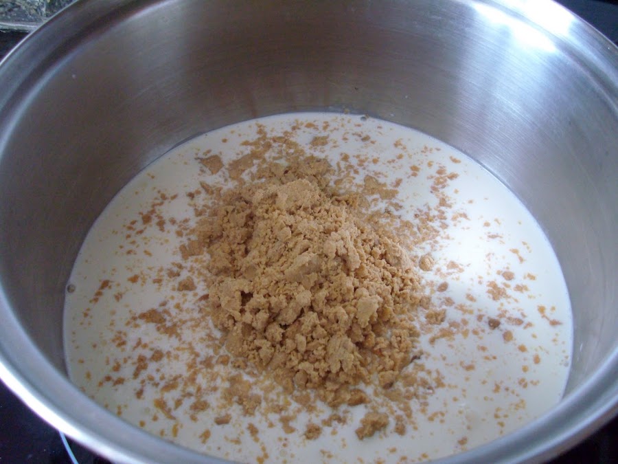 En un cazo grande poner la nata (crema de leche) a calentar..deshacer el turron con las manos ..e incorporar a la nata (crema de leche)....junto con el azucar...