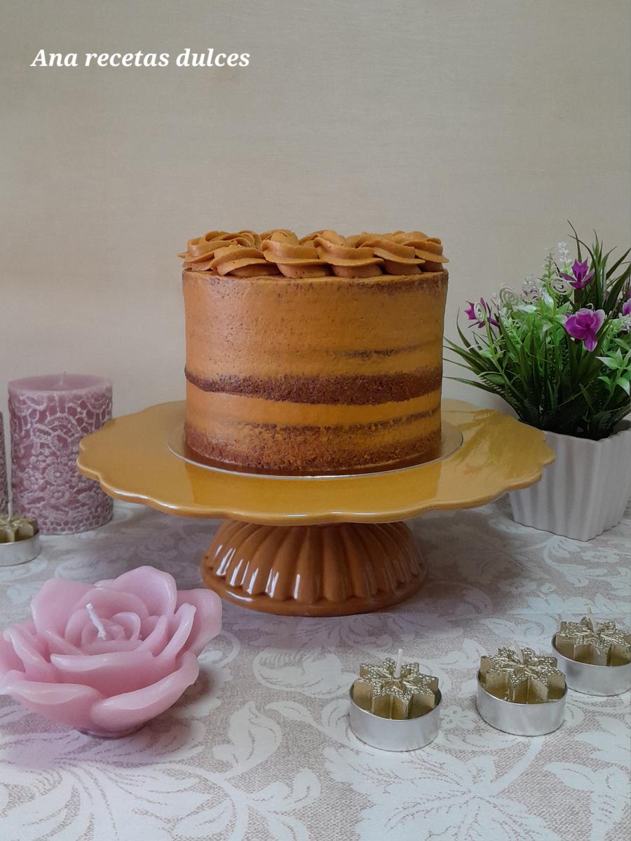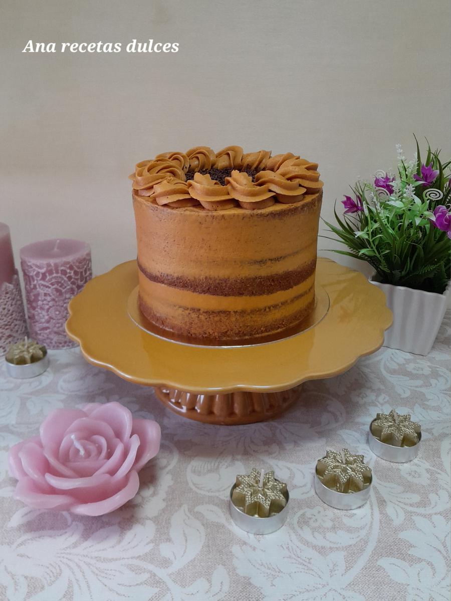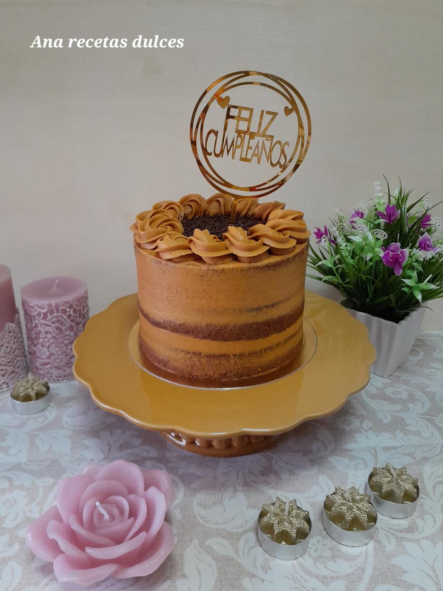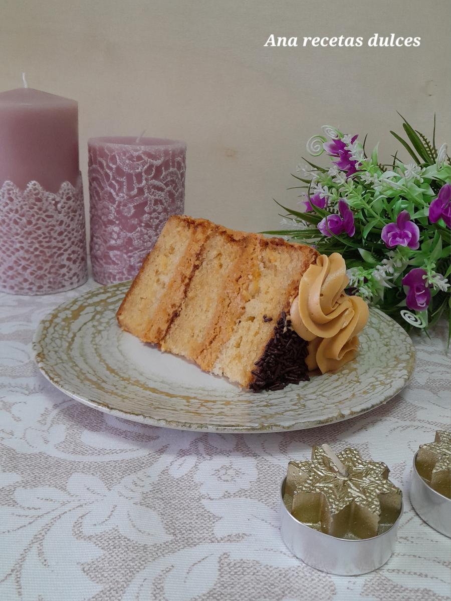En este caso, los bizcochos son de vainilla, mojados con almíbar y rellenos con buttercream de dulce de leche.