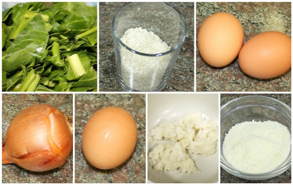 Mezclamos la acelga, el arroz, la miga de pan, la cebolla, el huevo y el queso rallado. Le añadimos la bechamel poco a poco, hasta que tengamos la consistencia de un puré. Añadiremos la sal, la pimienta y el orégano al gusto, reservamos.