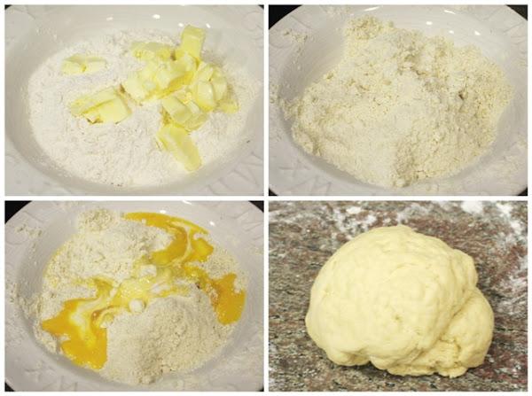 Empezaremos preparando la masa, tamizamos la harina junto con la sal y la mezclamos con la mantequilla fría hasta que esta última quede totalmente incorporada y la textura sea arenosa.