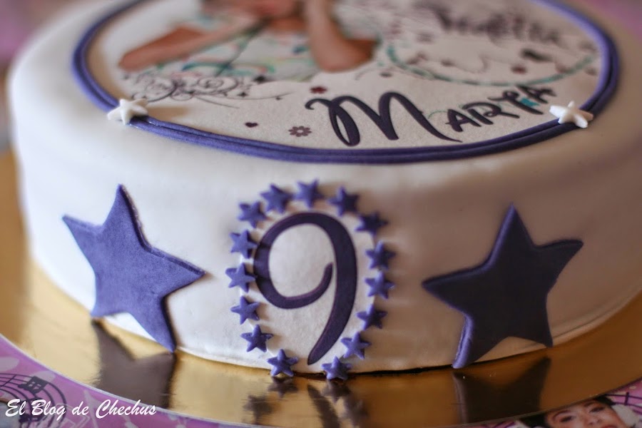 Este fin de semana ha tocado tarta de Violetta, para celebrar el cumple de Marta, que cumplía 9 añazos ya!!. Como no, lo que más le gusta ahora mismo es Violetta, así que la tarta tenia que llevar algo de ella.