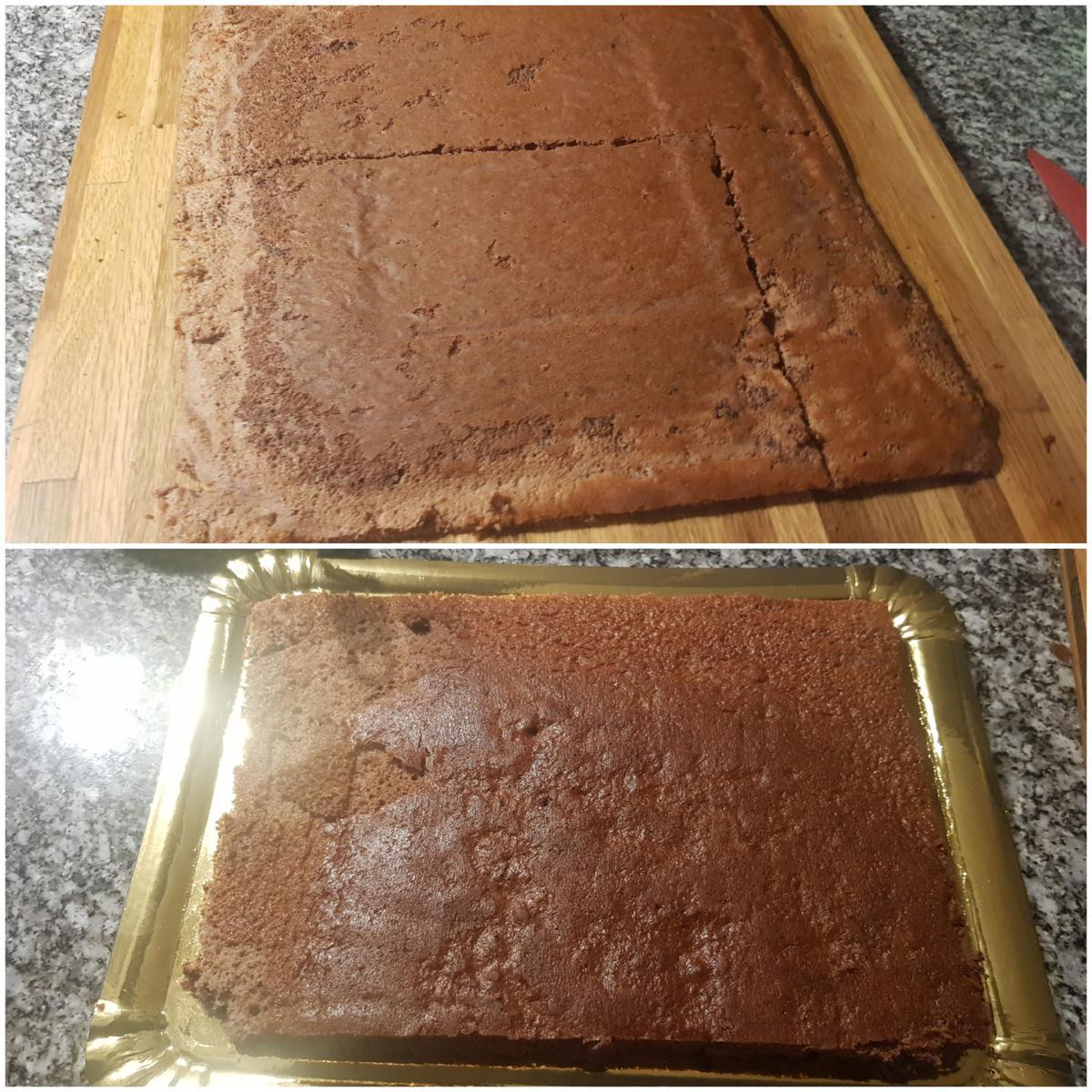 Como ya os he dejado el enlace del Bizcocho solo tendremos que hacer la yema, la nata (crema de leche) y la trufa. Deciros que yo en mi caso para hacer esta tarta dupliqué ingredientes del bizcocho, para hacer dos planchas en vez de una, ya que la tarta lleva tres pisos de bizcocho. Con los retales que me sobraron hice una mini tarta para dejarla aquí en casa.