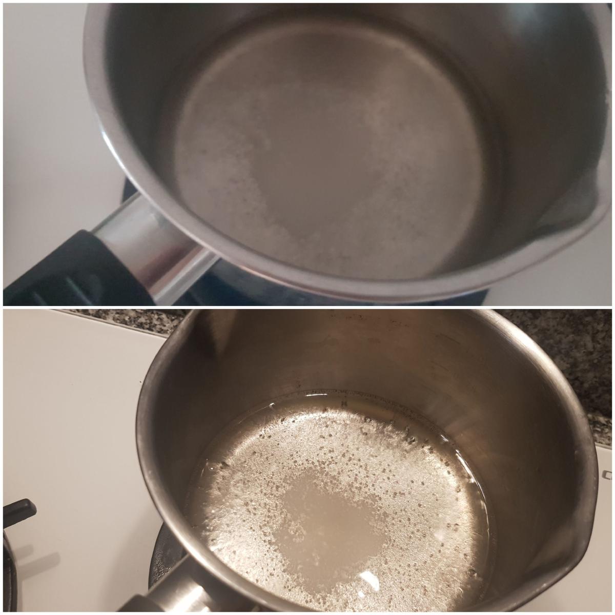 Sirope (opcional) Luego de hacer el bizcocho haremos el sirope para que se enfríe un poco. Solo tendremos que poner el azúcar, el agua y el ron en un cazo y dejar que hierba durante unos 5 minutos. Retiramos del fuego y lo reservamos para más tarde.