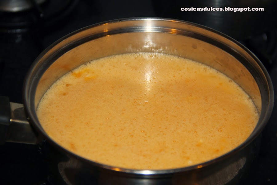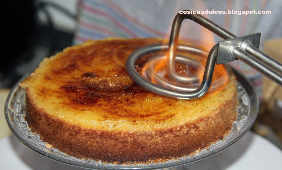 Cubrimos con una capa generosa de crema de yema, espolvoreamos de azúcar moreno y quemamos con una plancha o soplete.
