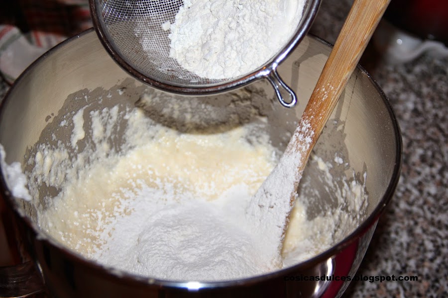 Finalmente añadimos el resto de la harina y seguimos mezclando con movimientos envolventes.