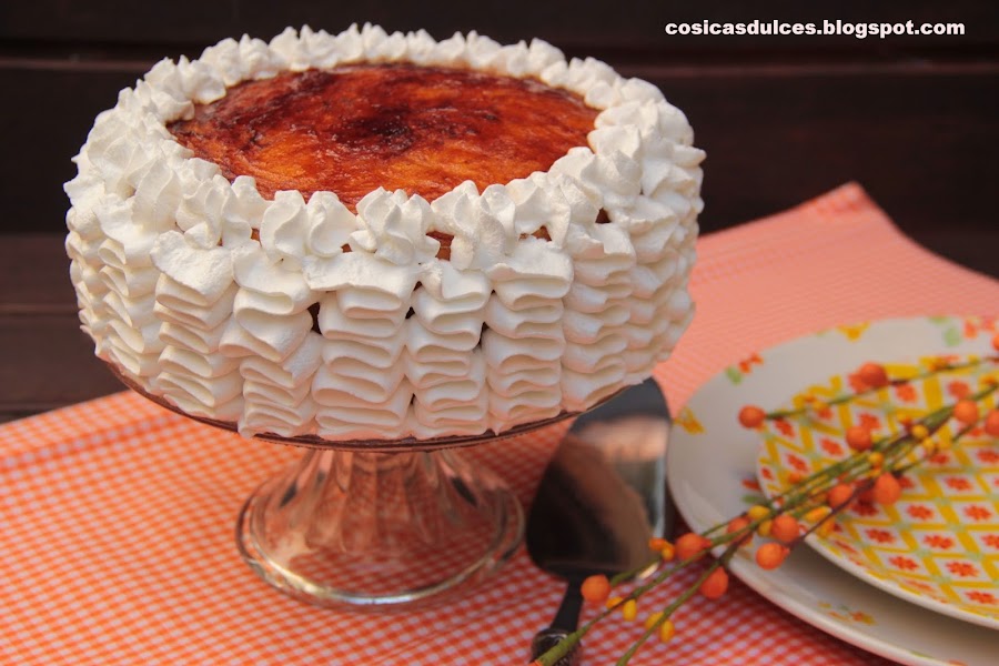 Finalmente decoramos los laterales de la tarta con la nata montada (crema de leche) (yo lo hice con la boquilla para hacer volantes que me gusta mucho como queda) y listo.