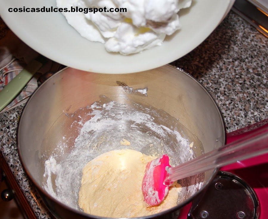 Seguidamente incorporamos con movimientos envolventes las claras que previamente habremos montado junto a la pizca de sal.