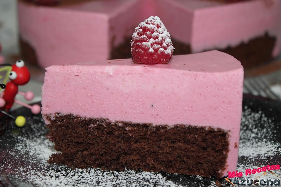 Transcurridas las 4 horas y veamos que esta fría la desmoldaremos y le quitamos el acetato y con cuidado le sacamos el papel vegetal y la colocamos en la bandeja que tengamos pensado presentarla.