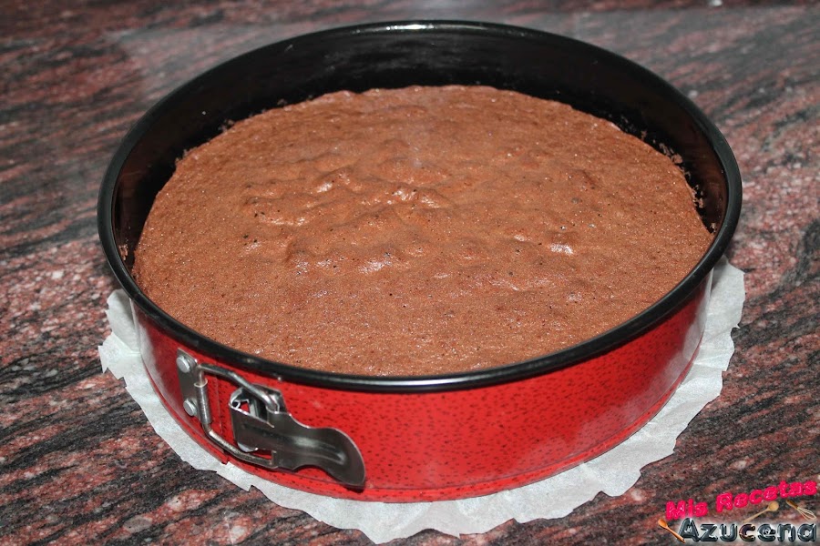 Transcurridos los 25 minutos comprobaremos que si está listo, para ello abriremos el horno y sin sacar el molde pincharemos en el centro con ayuda de un pincho de cocina o un cuchillo, si sale limpio tendremos el bizcocho listo, de lo contrario lo dejaremos unos minutos más, si esta listo lo sacaremos y lo dejaremos entibiar en el mismo molde.