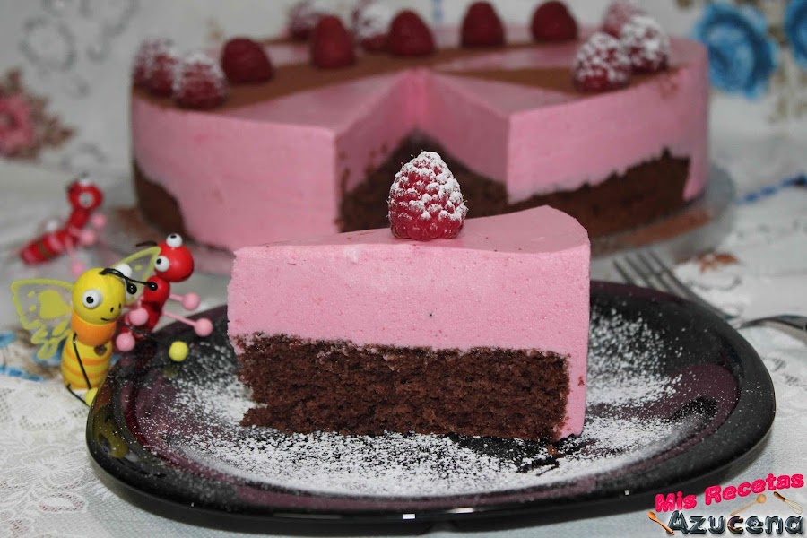 Para adornarla le pondremos cacao en polvo y las frambuesas que teníamos reservadas.