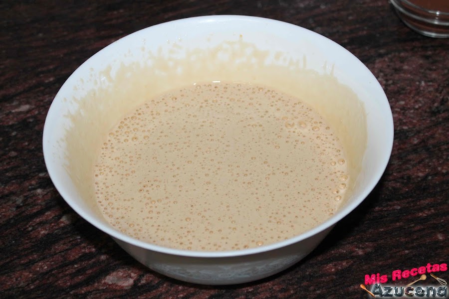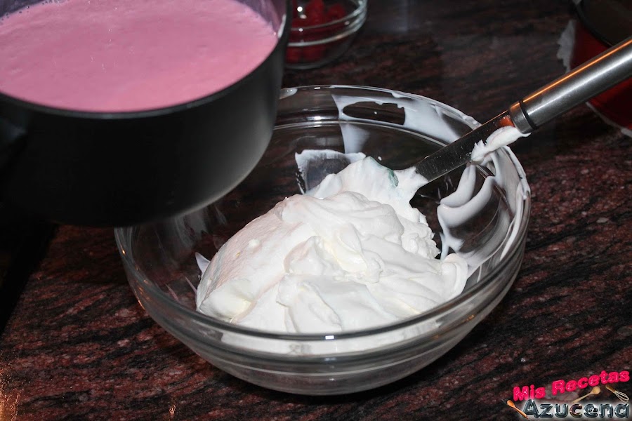 En otro bol levantaremos la nata (crema de leche) hasta que coja un punto de nieve.