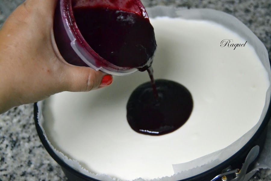 Ponemos las moras por encima y dejamos reposar en la nevera una o varias horas.