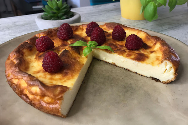Esta será la tarta tiene pinta de ser de queso, pero es bastante más ligera al llevar en su lugar Yogur Griego y no por ello deja de ser deliciosa. La podemos hacer incluso sin azúcar, usando Sucralosa, además hacerla con la Olla GM es facilísimo, sigue mis instrucciones y te quedará perfecta.