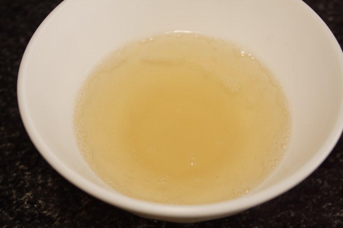 Escurrimos la gelatina, la pasamos a una taza y metemos en el microondas a máxima potencia unos 15 segundos. Se tiene que fundir.