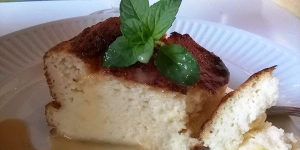 Servir la tarta bañada en el almíbar. Yo la serví con una salsa de caramelo líquida.