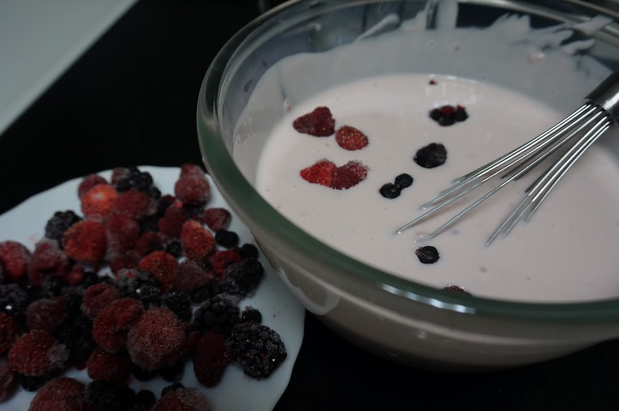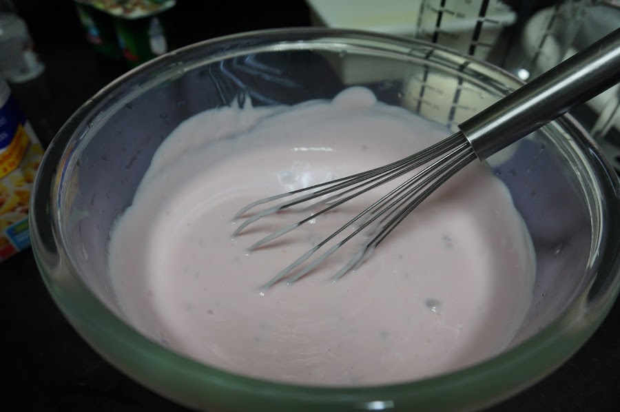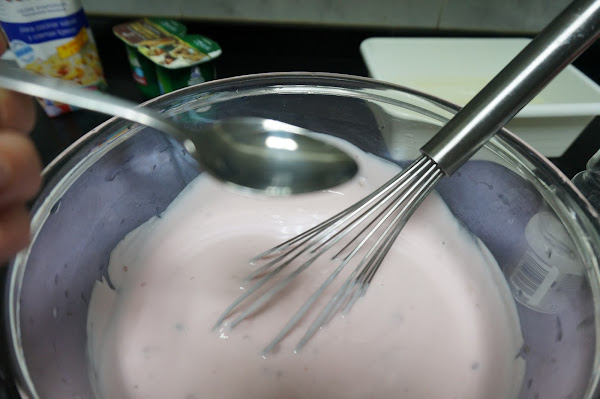 Batimos bien los yogures y ponemos una cucharadita de edulcorante. Lo podéis probar por si os gusta más dulce.
