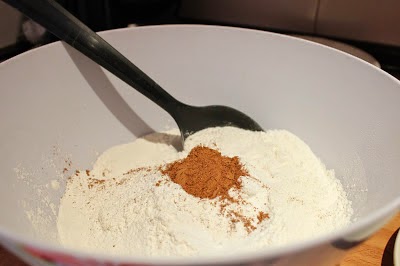 Vamos a empezar por encender el horno y lo pondremos a 175º también cogeremos los moldes que vayamos a usar en este caso yo he hecho dos bizcochos, engrasamos con mantequilla y ponemos en el fondo de cada molde un trocito de papel de hornear para después desmoldarlo de mejor forma. Por otro lado. ponemos una fuente donde mezclaremos la harina, el polvo de hornear, el bicarbonato. la canela y lo reservamos.