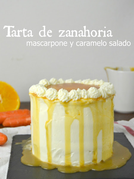 Esta tarta de zanahoria, mascarpone y caramelo salado la preparé el jueves pasado para mi 27 cumpleaños. Llevaba ya varios días pensando en la tarta, que en un principio iba a ser de masa quebrada y chocolate pero, al final, esa misma tarde, cambié de idea..¡Así que fué ultrarapida! ¡Menos de 4 horas desde que baje a hacer la compra hasta que le estaba haciendo las fotos!
