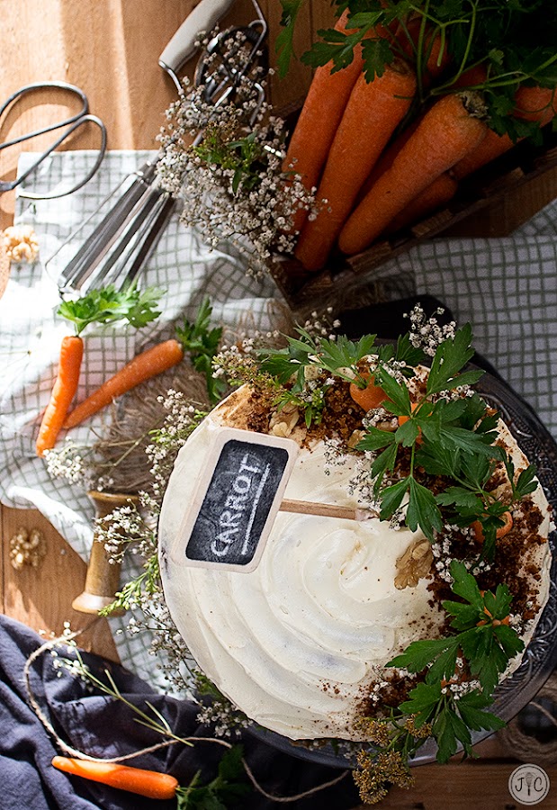 Es un bizcocho muy jugoso, en parte por la zanahoria, que le aporta jugosidad extra. Hay versiones con manzana, que son aún más jugosas, pero el resultado no es tan abizcochado, pierde esa parte. Esta versión de la tarta de zanahoria o carrot cake os encatará, ¡lo veo venir!