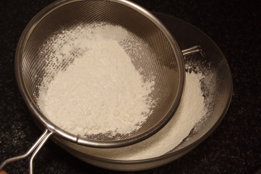Tamizamos la harina y la levadura con un colador y reservamos.