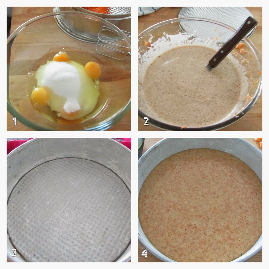 Esta ha sido la primera vez que hago tarta de zanahoria, a pesar de lo mucho que me gusta. Es por eso que busqué la receta del bizcocho en Internet y encontré una que me parecía bastante buena,del blog Un pellizco de canela.