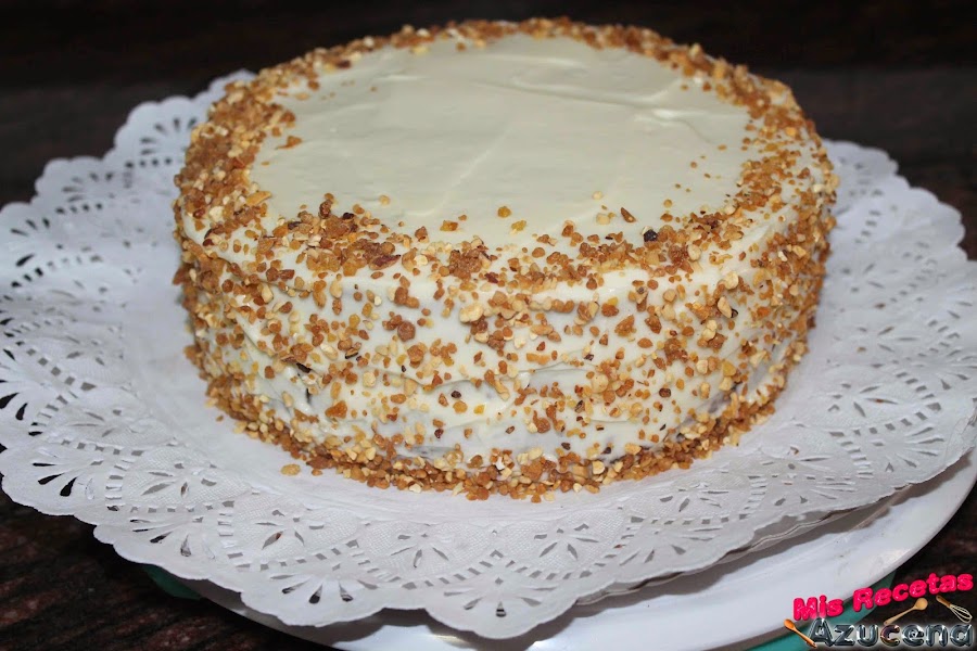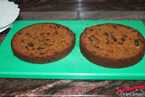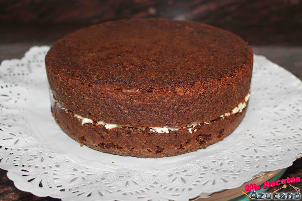 Cuando el bizcocho este frio lo cortaremos por la mitad, le ponemos una capa de crema de queso y volvemos a tapar con la otra mitad, con la crema que nos queda y con ayuda de una espátula de repostería cubriremos el bizcocho.
