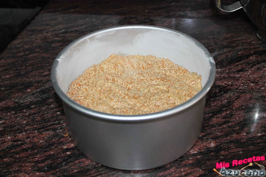 Ya tenemos el molde listo, cogemos la masa y la ponemos en el molde, repartimos bien y metemos en el horno para dejarla cocer entre 50 y 55 minutos.