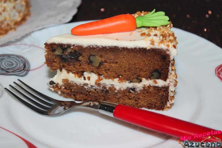 Esta tarta cuando la vi me encantó, tenía una pinta estupenda y de sabor tenía que estar muy rica por los ingredientes que llevaba, y vaya si lo está, le he añadido algún ingrediente más, como las nueces, la naranja amarga.... que no le ha perjudicado para nada, es buenísima y muy jugosa, como ya sabéis los bizcochos preparados con verduras siempre quedan más humedos y son más suaves de comer. Estos postres son estupendos para hacer comer a los niños algo de verdura sin que te la rechacen a la primera de cambio, con esta tarta no notarán nada de nada.