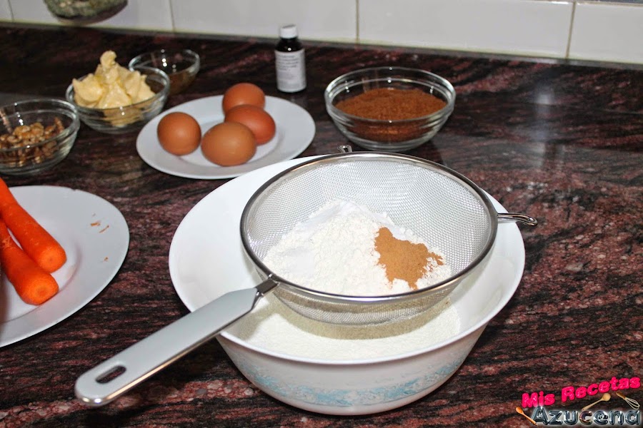 En un bol tamizaremos la harina junto con la canela, la sal y el bicarbonato, reservamos.