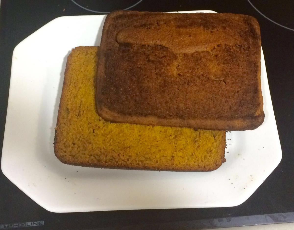 No hace falta dejarlo reposar, así que directamente, metemos el molde en el horno. Normalmente echo toda la mezcla en un mismo molde y luego corto por la mitad el bizcocho para añadir el queso.