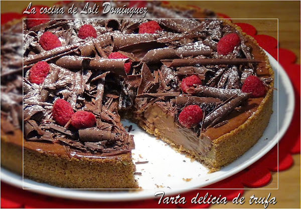 Tarta delicia de trufa, una riquísima y estupenda tarta que se prepara muy fácil y requiere muy poquito tiempo en la cocina y quedaremos con ella fenomenal en cualquier cumpleaños, día de fiesta, celebración especial e incluso en navidades.